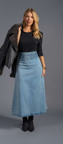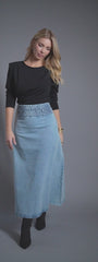 Woven from Peruvian stretch denim and finished with a hand-braided waistband, the Elizabeth Skirt embodies refinement with ease. Its high-waisted shape flatters effortlessly, offering poise without pretense. A high quality back zipper ensures a smooth, secure fit. Thoughtfully crafted for years of wear, it’s a piece that mirrors its wearer: strong, graceful, and evolving beautifully with time.