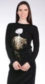 Tree T-Shirt in Black and Gold Foil 3/4 Sleeves