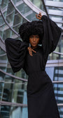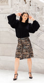 Wowza! there was no savings in fabric and in drama. You can match with the black skirt, zebra skirt or any skirt or pants in your closet.