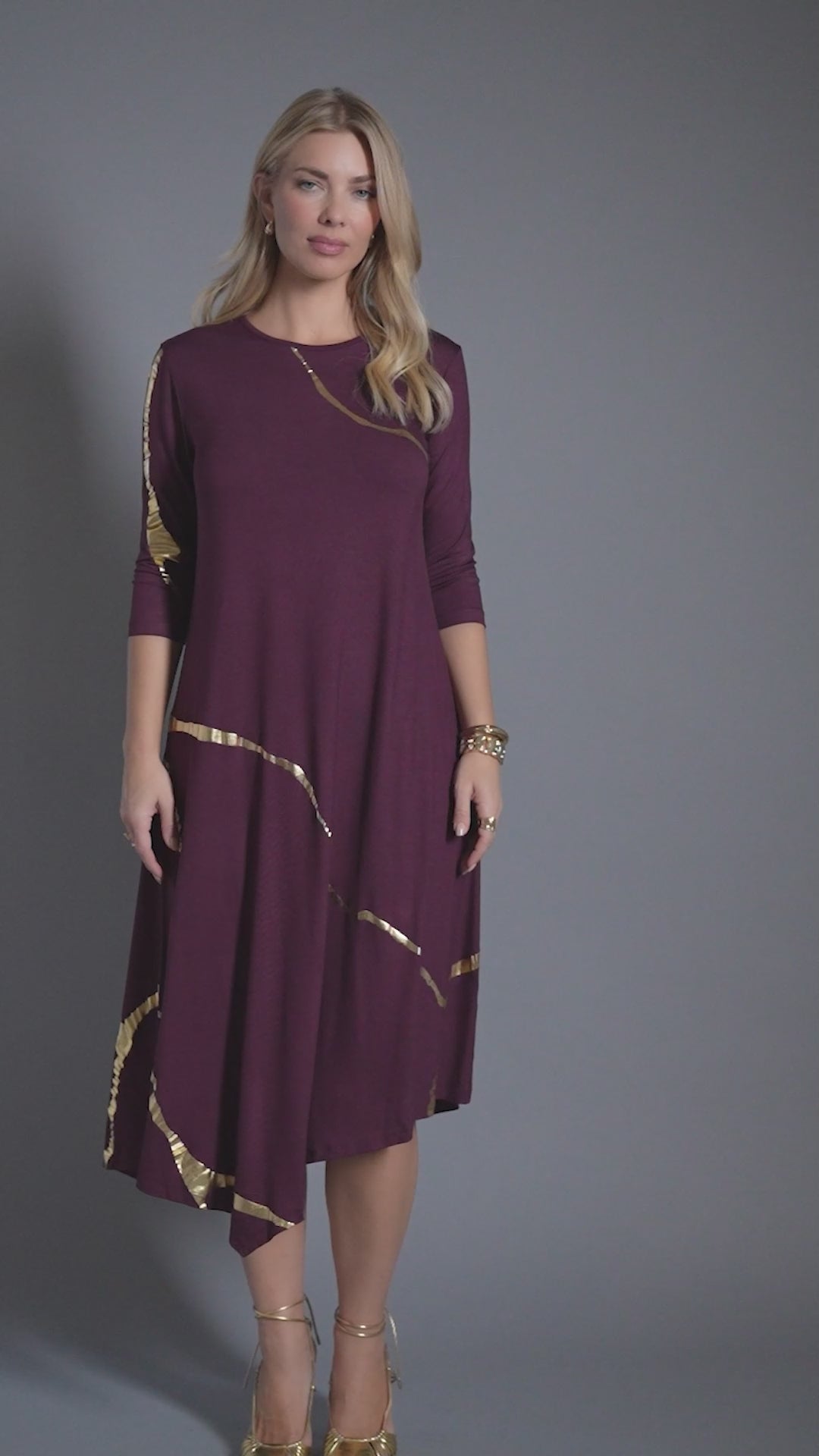 Hikari Burgundy And Gold Foil Kintsugi Dress