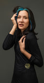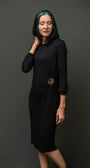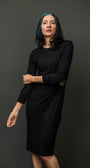 Introducing the all-new Key dress! This elegant dress features a gentle cinching at the waist, accentuated by a luxurious metallic fabric that adds a touch of uniqueness. The sleeves strike a perfect balance—not too tight, yet not overly loose, ensuring both comfort and style.