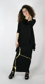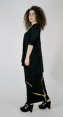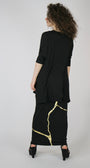 Loose-fitting top with black with gold foil. This top hides what needs to be hidden is feminine and very flattering.