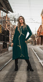 Nobu Dress (Viscose) Pine Green with Gold Foil