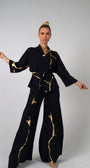 Made with our luxurious Italian Viscose and foiled only in the inverted pleat, this palazzo pants is as stunning as it is comfortable. Dress it up or down.