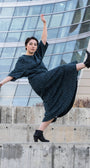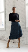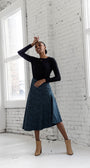 A soft A line skirt with a special cut out detail. A perfect dramatic skirt to match the Kumi Vest.